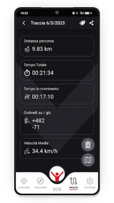 Con la funzione “Tracciami” GeoResQ memorizza i tuoi percorsi e li invia al portale www.georesq.it dove sono archiviati e possono essere rivisti in un secondo momento, comodamente da casa, attraverso la Tua area personale. I tuoi percorsi possono essere esportati per la visualizzazione con altri programmi cartografici e possono essere condivisi attraverso i social.