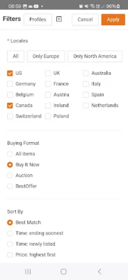 Advanced sorting options, including total price, shipping, bid count, and more.