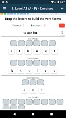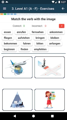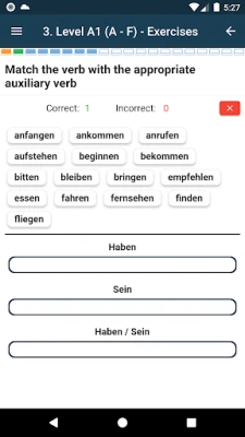 The app contains nearly 60 lessons, almost 800 words in dictionaries, and over 1000 examples in phrases. It includes about 260 graphics, nearly 2500 sounds, over 600 conjugations along with audio and 320 exercises, including 'Find word pairs', 'Translate into German'. Perfect for learning German. Start your learning today!