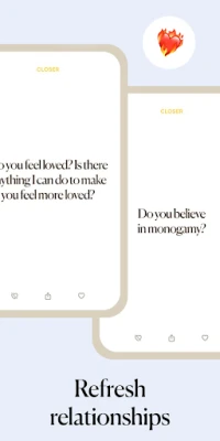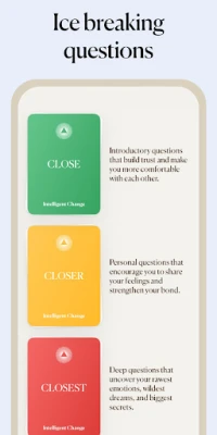 - Questions are separated into three levels: Close, Closer, Closest. Each progressive level poses questions that become more personal, challenging players to share and strengthen their bond.
