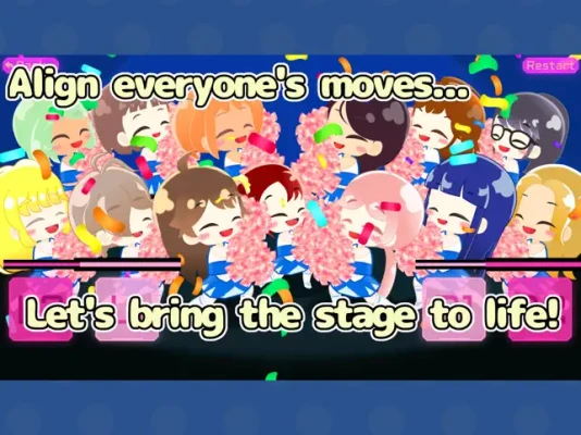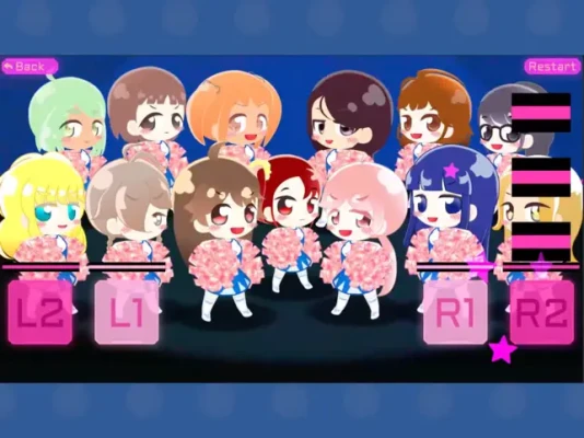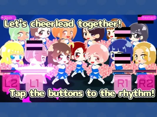 Today we all get to cheerlead!Tap the keys in time to the rhythm so that all 13 dancers can move in unison.