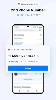 Second phone number service allows you to have a second mobile number that is not associated with your main number without the need for an additional SIM card. Choose your preferred number and start using it right away.