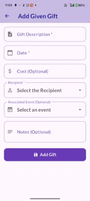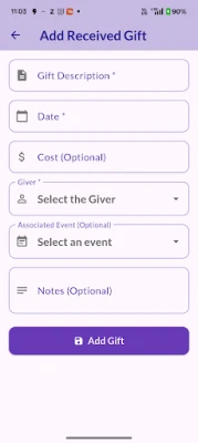 Gifts Received: Easily log gifts you've received, from whom, and for which event. This is perfect for ensuring thoughtful reciprocation.
