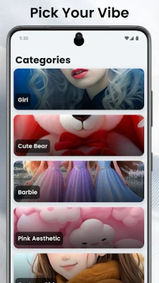 Girly Wallpaper HD – Cute Pink includes wallpapers categorized into different styles such as pink aesthetic, anime girls, cute characters, soft patterns, pastel designs, barbie themes, and more. Each wallpaper is selected carefully to match a clean, elegant, and visually appealing girly aesthetic. With just one tap, users can easily set wallpapers on their devices and enjoy a refreshed screen look every day.
