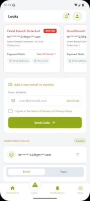• Breach Alerts: Instant notifications when your information is detected in data breaches.