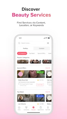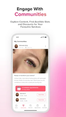 Discover and book beauty services all in one app. Explore new services, search through content, and receive treatments at home. Join your favorite business communities for exclusive deals and last-minute slots.