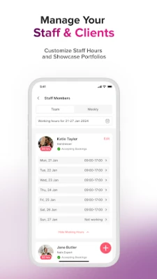 Staff Member Portfolio: See portfolios to know staff talent before booking.