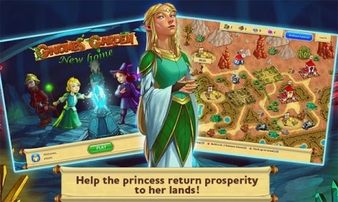 Get ready for adventure through an unknown land full of secrets and mysticism in the thrilling, casual fantasy strategy game Gnomes Garden: New home. More than 40 packed levels, tons of different structures, increasing difficulty, a fun plot, strange magical worlds, and captivating gameplay for any age all await you inside. Construct buildings, manage resources, fix ancient mechanisms, use powerful magic and restore ancient magic gardens. And with simple controls and clear training, you'll get the basic controls down in no time.