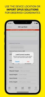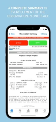 The app allows you to import the text from an OPUS Solution email to populate observed position, actual observation times and other details of the session. The OPUS Solution can also be included in the Observation Log PDF output.