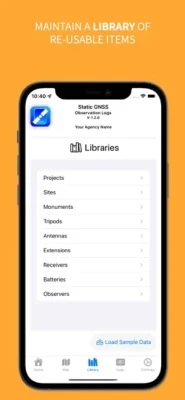 Whether you perform just a few or hundreds of observations a year. GNSS Log App gives you the tools to eliminate blunders and transcription errors. The layout is simple and intuitive and promotes a logical workflow. The app contains a user built library that can be used for each observation. Library Items can be imported and exported to other users. Support for fixed height and collaspible tripods, antenna extensions and integrated antenna/receiver configurations are provided.