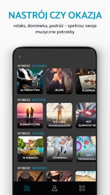 - Gotowe playlisty tworzące muzyczny klimat, dopasowane do nastroju lub aktywności