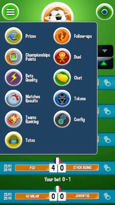 Free bets on real football matches in Premier league, La Liga, Ligue 1, Bundesliga, Serie A, Primeira Liga and Champions league, and prizes in cash per match and per league.
