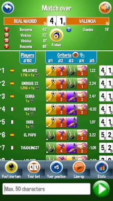 Winners are selected based on their bets on the final score, half-time score, goal scorers, etc. To win a prize, no need to make a perfect bet, what really matters is to finish ahead of the other contestants.