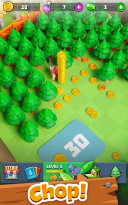 Collect gold to hire more lumberjacks! Merge them together and increase their power and efficiency. Break through difficult obstacles to collect Gold, Gems, and Energy and complete more levels.