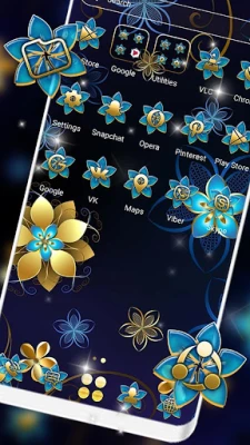 ♕ With the Golden Blue Flower Launcher Themes you can: