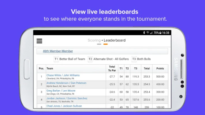 - Live scoring: managers and golfers have the ability to enter scores from their smartphones while out on the course.