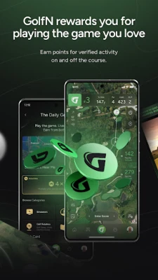 Play golf anywhere in the world. GolfN tracks your rounds automatically with 3D GPS on courses globally. Every swing, every milestone earns you points. Complete challenges off the course to stack your rewards even faster.