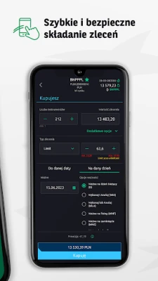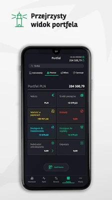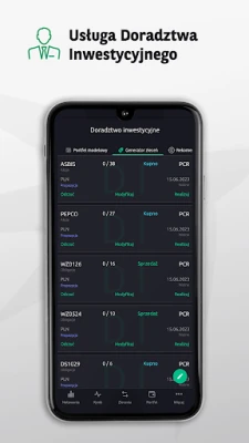 Aplikacja umożliwia szybki dostęp do rachunku maklerskiego, składanie zleceń zakupu oraz sprzedaży. Pozwala przeglądać historię złożonych zleceń oraz zrealizowanych transakcji, podgląd notowań i wykresów w czasie rzeczywistym, a także umożliwia składanie zapisów ofertach pierwotnych.