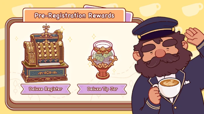 🌟🎁 Pre-register for Good Coffee, Great Coffee and get 2 premium rewards for FREE during the official launch! Start your cozy cafe sim journey strong with a beautiful register and an adorable tip jar!