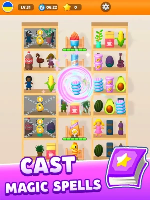-Earn Rewards: Successfully completing levels will reward you with coins and stars. Use these rewards to unlock new shelves, power-ups, and other exciting features as you advance through the game.