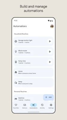 The Home tab gives you shortcuts for the things you do most, like playing music or dimming the lights when you want to start a movie. Control it all with just a tap or two – and get to the good stuff faster. The Feed tab highlights important events in your home in one place. Here, you’ll also find ways to get more out of your devices and improve your home setup.