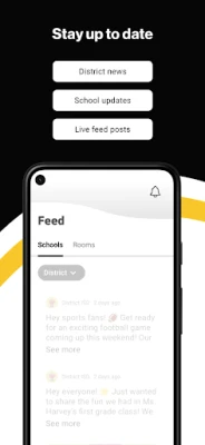 DISTRICT UPDATES In the Live Feed is where you'll find updates from the administration about what's going on in the district right now. Whether that's celebrating a student's success, or reminding you about an upcoming deadline.