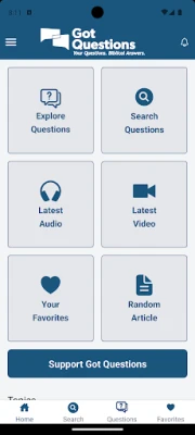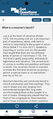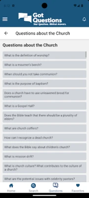 This application has over 9,300 of our most frequently asked questions about the Bible organized by topic, with a built-in search function, the ability to bookmark articles for easier future access, automatic downloading of new/updated articles, and the option to ask us a question if the answer to your question is not already available in the app.