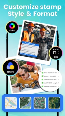 • GPS Location Stamps & Map Watermarks: Geotag your photos with precise GPS coordinates and location names.