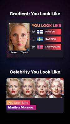 Unleash your creativity with our AI-driven quizzes & fun features. Find your Celebrity Look-Alike, turn yourself into a Cartoon Character, check out AI tests and more! The AI algorithms ensure realistic and breathtaking results that will leave you and your friends amazed.