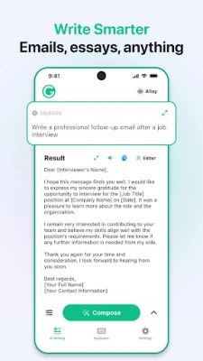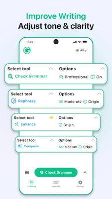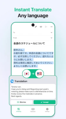 • AI Keyboard Integration: Use the built-in AI keyboard to get real-time grammar correction, paraphrasing, and suggestions while typing in any app — email, chat, social, or notes.