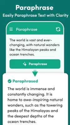 Need to rephrase sentences or ideas? Paraphrase feature provides smart alternatives, helping you avoid plagiarism and express concepts in a fresh, original way. It’s a game-changer for content creators and academics.