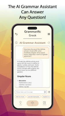 Unlock the linguistic treasures of the Greek language with "Grammarific Greek," your personalized guide to mastering Greek grammar. This advanced learning application is meticulously tailored to support language enthusiasts, from beginners to advanced scholars, as they delve into the rich complexities of Greek.