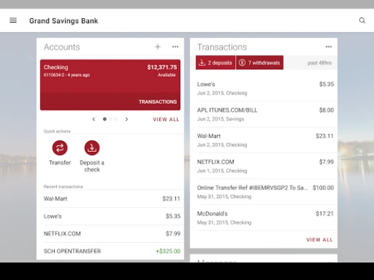 Grand Savings Bank is your personal financial advocate that gives you the ability to aggregate all of your financial accounts, including accounts from other banks and credit unions, into a single view. It’s fast, secure and makes life easier by empowering you with the tools you need to manage your finances.
