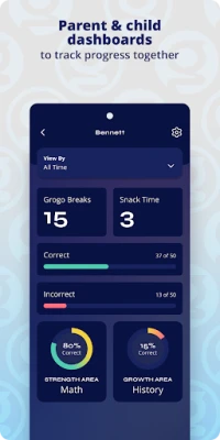 ➡️ For Parents: Gain insights into your child’s strengths and challenges with an intuitive parent dashboard. See which subjects they’re excelling in and where they might need more focus. You can even adjust their settings as they grow.