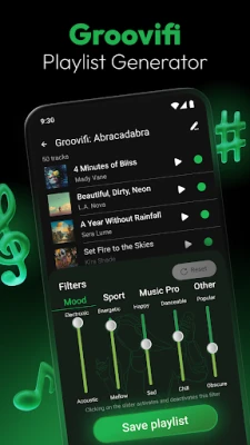 Building music around one's moods and tastes is the ultimate enjoyment. With Groovifi: Mood Playlist Generator and Create Playlist: Custom Song Recommendations, you can get your perfect soundtrack. Make it yours using Groovify: Playlist Maker.