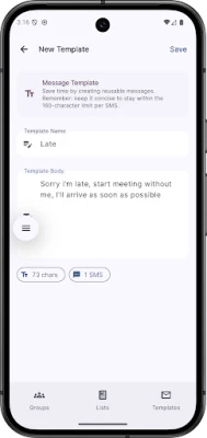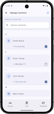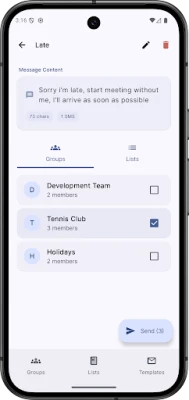 Create custom groups for clients, friends, colleagues, or events. Add, edit, or exclude members with a few taps. Sending a single SMS to hundreds of people has never been so simple.