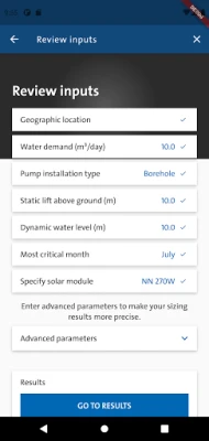 With the Grundfos GO Solar app, you get quick and easy solar pump sizing regardless of your location, internet connection or application needs. Size your system in one of three ways with the information you have on hand: