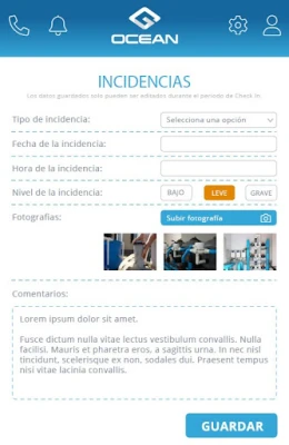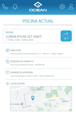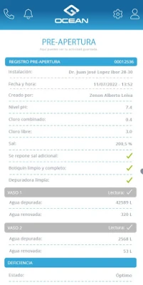 La aplicación de Grupo Ocean cubre actividades diversas como socorrismo, mantenimiento de piscinas, obras, consejerías, limpieza... en procedimientos habituales como elaboración del libro de registro del agua, seguimiento de mantenimiento y de actividad, checkin y chekout para registro de jornada; así como comunicación de asistencia personal e incidencias.