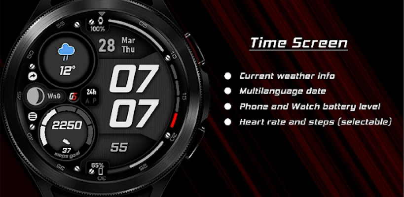 The watch face can be optionally controlled from your phone (a separate application needs to be installed on your phone). This gives you the ability to control all watchface settings, backup and restore customizations, and receive notifications from the watchface when the battery drops to the level you have set, or your heart rate bpm reaches the limit you have set.