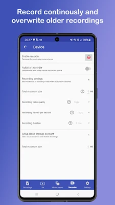 • privacy is better since videos are saved locally on the phone, and optionally uploaded on your own google drive and not on a proprietary cloud