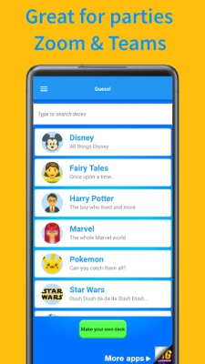 - Charades Mode - keep the word to yourself. Other players must guess the word you describe, mime and act.