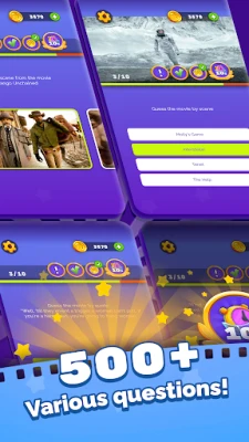 Text and photo questions that deeply explore the plots, characters and details of the films. The complexity of the questions increases as you progress, which allows you to gradually deepen your knowledge and improve your skill level.