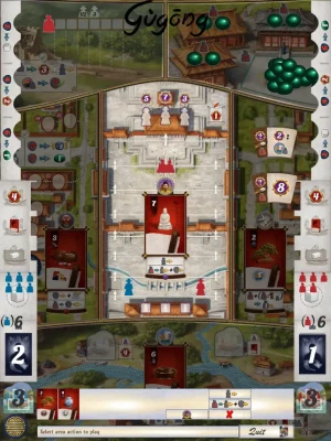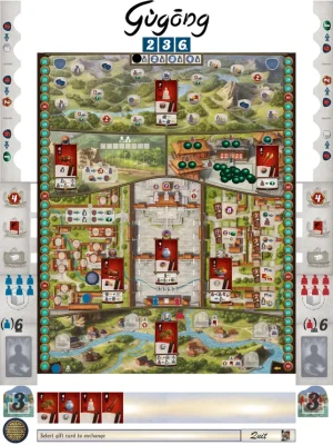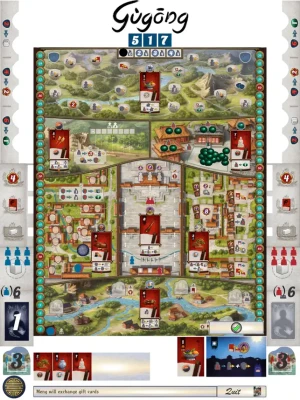 Gugong uses this extraordinary custom as its basis. Players take on the role of powerful Chinese families trying to gain influence and power by exchanging gifts with Officials. The gift cards you offer as a player have to be of a higher value than the one you receive, forcing you to make strategic choices regarding which actions you want to take each turn. You will travel around China, sail down the Grand Canal, purchase precious jade, help construct the Great Wall, secure advantages through decrees, influence the game through intrigue, and ultimately, receive an audience with the emperor.