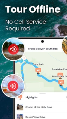 Bring GuideAlong with you for your backroads trips and car journeys. No need for cell service or WiFi while on the road, even in remote locations like regional parks. Everything is downloaded to your device so you can enjoy your road trip with a GPS travel guide. The app also offers trip planning & suggested itineraries to make the most of your national park tours. You can also listen to commentary before & after you travel & play your own music in the background.