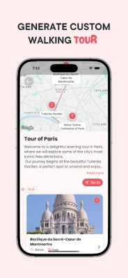 Guidly uses your location and interests to recommend the best places around you: iconic landmarks, historical monuments, cultural hotspots, and hidden gems. Whether you're in Paris, New York, Rome or your hometown, Guidly is your personal tour guide.