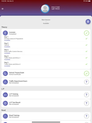 Features and content: 1. Training on traffic and road signs 2. Watch the 3D educational videos of the theoretical course. 3. A question bank for exam training 4. Follow-up of the student’s progress in the curriculum. 5. Student lessons dates and reminders.