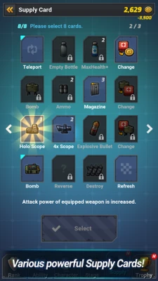 Attack enemies and barricades with weapons, character's Health, and bombs, and collect points by collecting gold while recovering character's health with Med Kits. You can acquire new stages and characters by increasing the number of points while earning supply cards. You can also unlock characters' abilities and new skill cards with gold from stages.