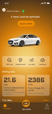 When driving, GWSCAN will record the index like average speed, fuel consumption, mileage, max engine revolution speed, and max coolant temperature and show them on the app. This will help you know vehicle status and fuel consumption info on your trip.