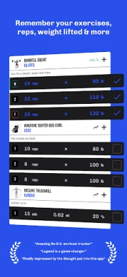 • Never forget reps & weight lifted last workout