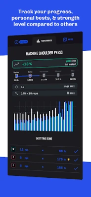 • Strength & gains - Percentage of improvement progress tracker